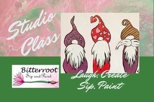A fun relaxing step by step artist led class.Come paint these lovable gnomes with us! If you don't have a Valentine, now you'll have 3! And if you do, bring them in with you two!